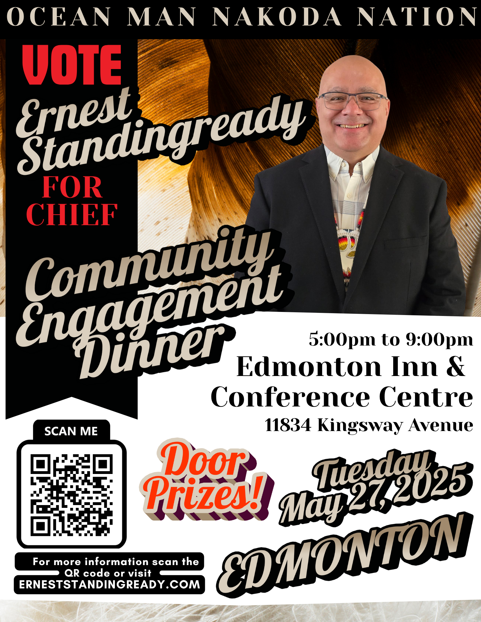 After discussions with many families & individuals of our Ocean Man Nakoda Nation over the past few years, I have agreed to put my name forward as a Candidate for Chief of Ocean Man Nakoda Nation. I do not take this request lightly, as our people now are facing a crossroads.